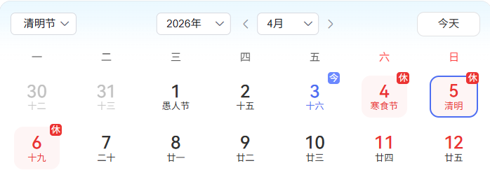 放假时间为4月4日至6日,共放假3天,且不调休~